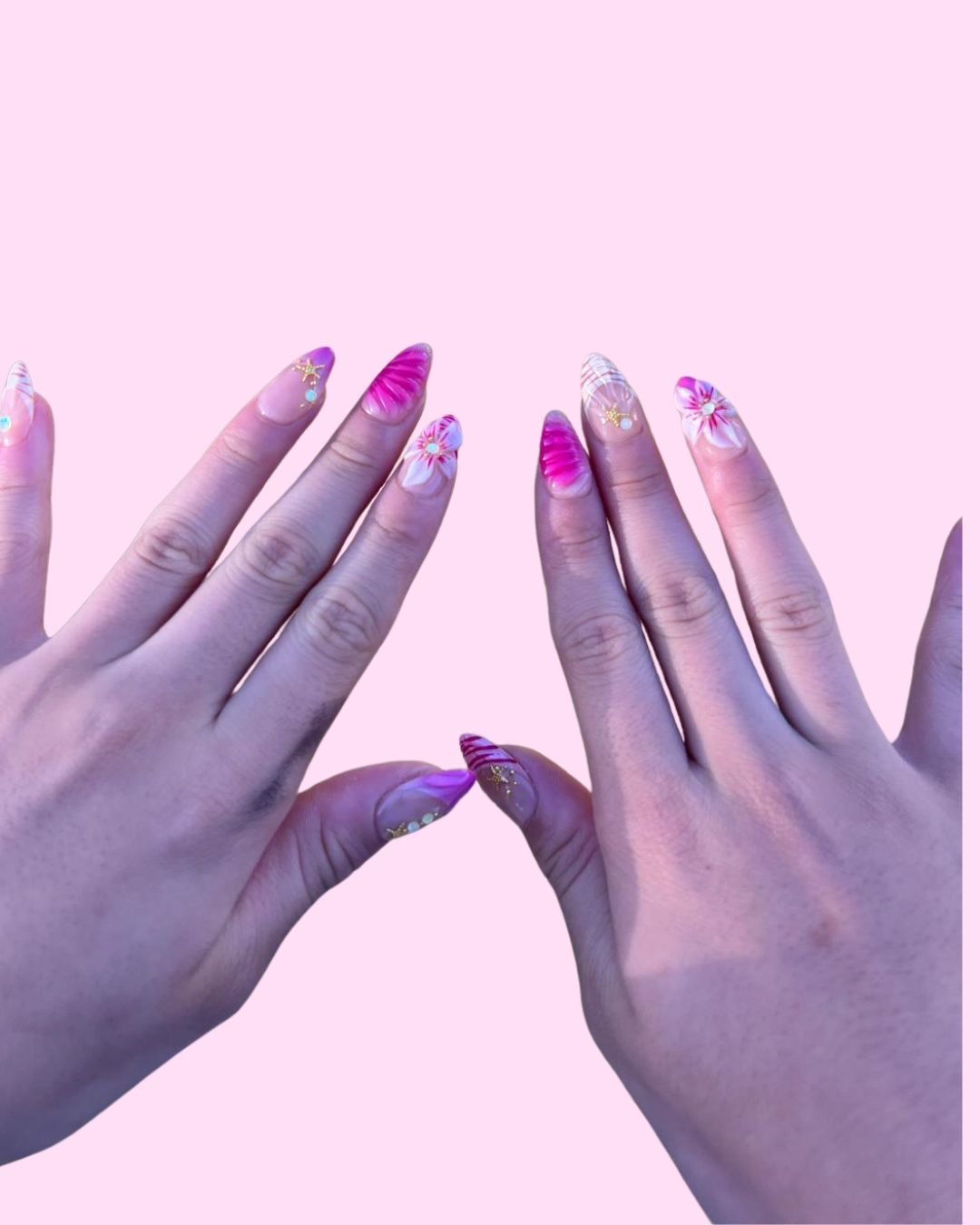 These floral nails are so pretty. I love the attention to detail in each flower.