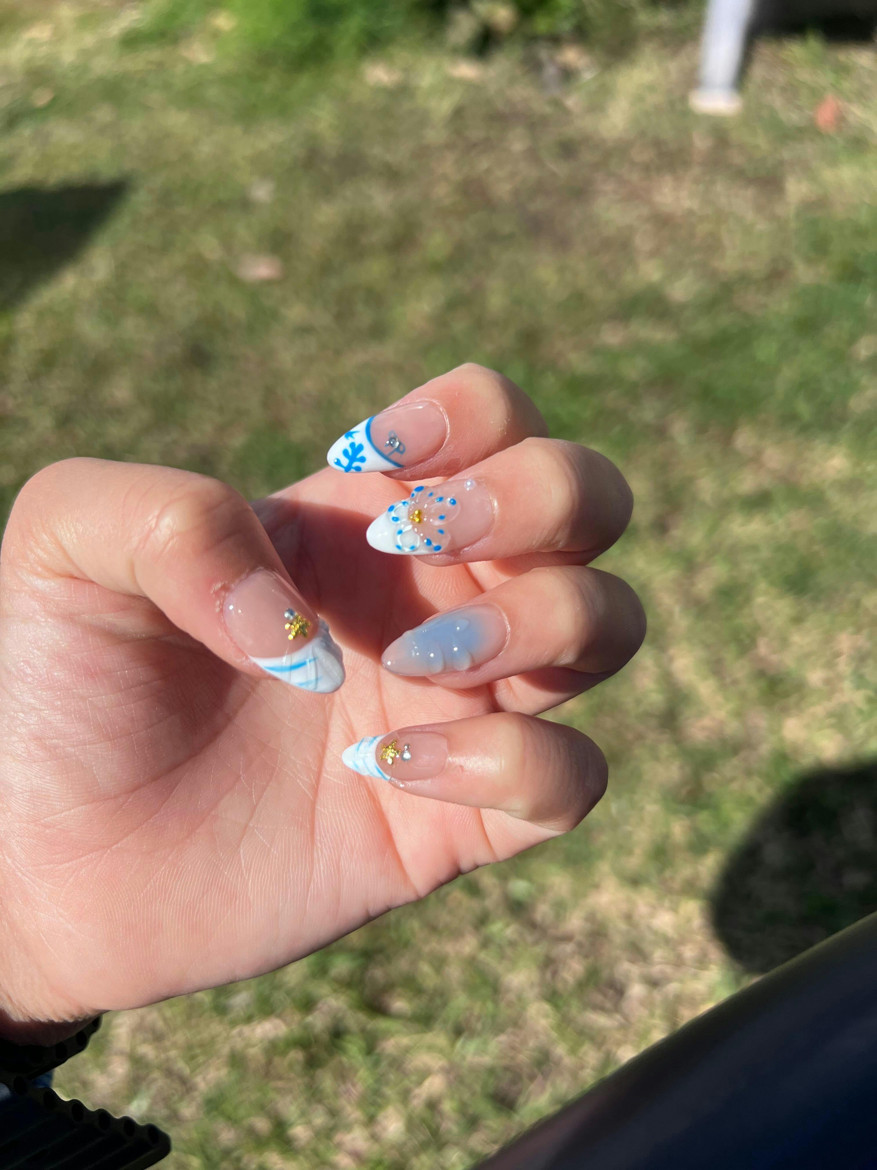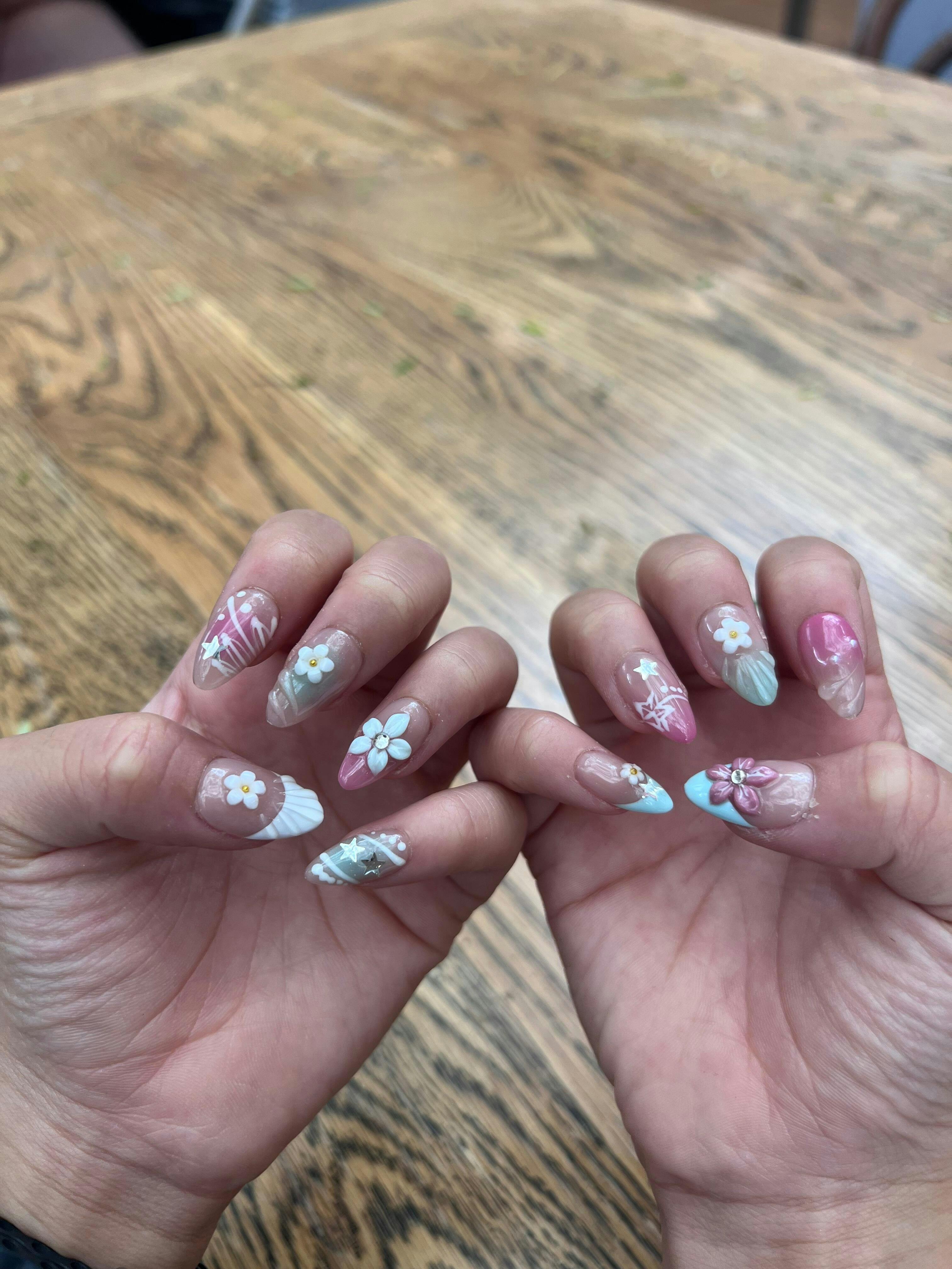 Sunbeam Blooms radiates cheerful elegance with bright, floral-inspired tones. Handcrafted for easy wear and reusability, these press on nails bring a sunny, uplifting touch to your look.